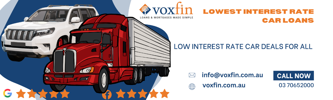 A: Rates vary, but VOXFIN’s experienced vehicle finance brokers help clients access deals as low as 5.99% p.a., depending on credit and lender policy